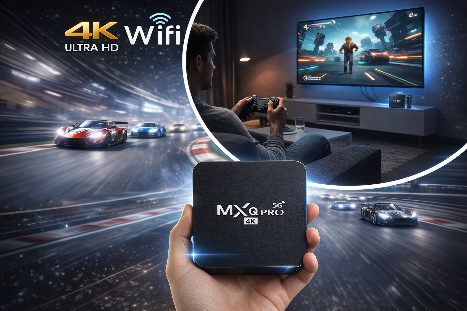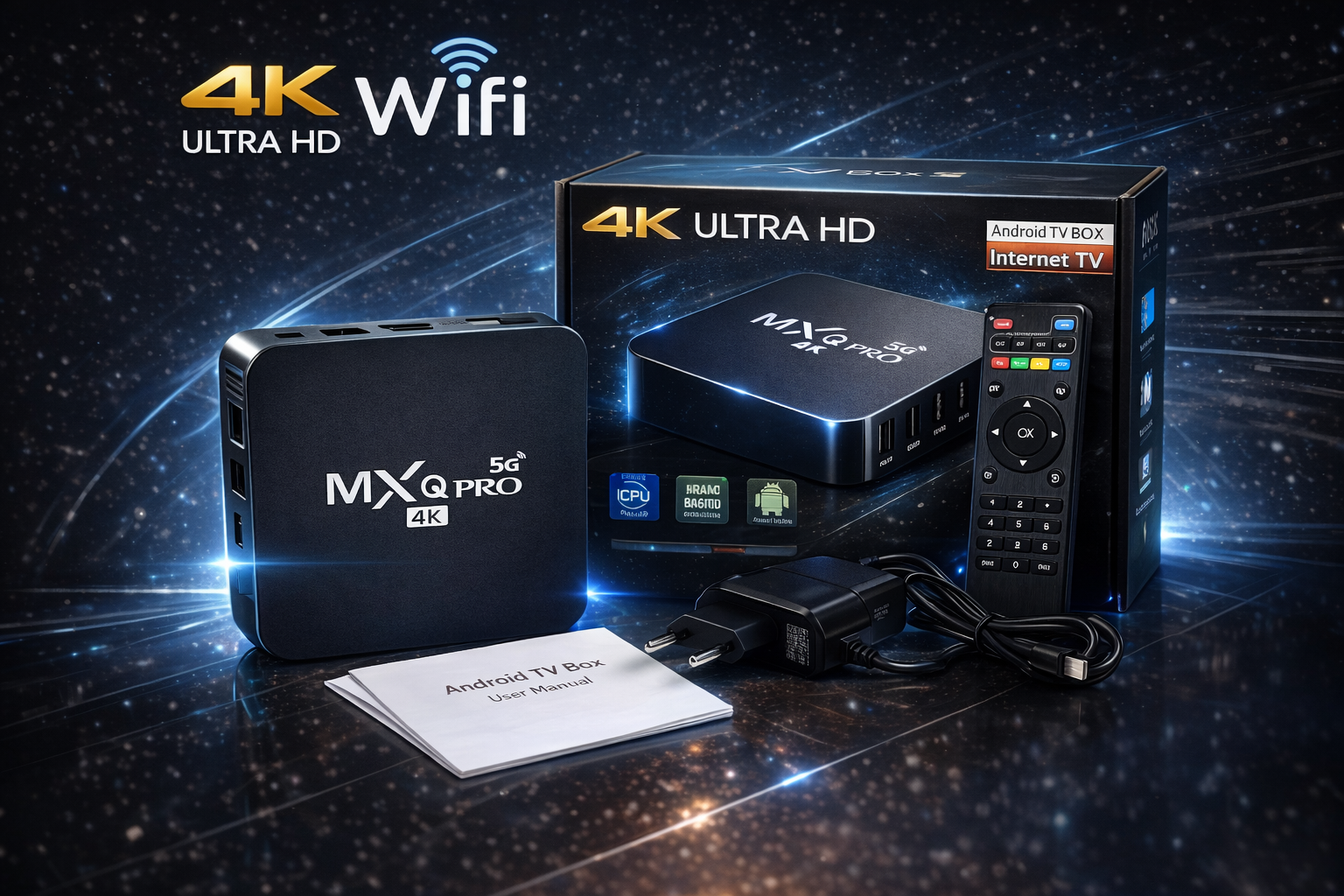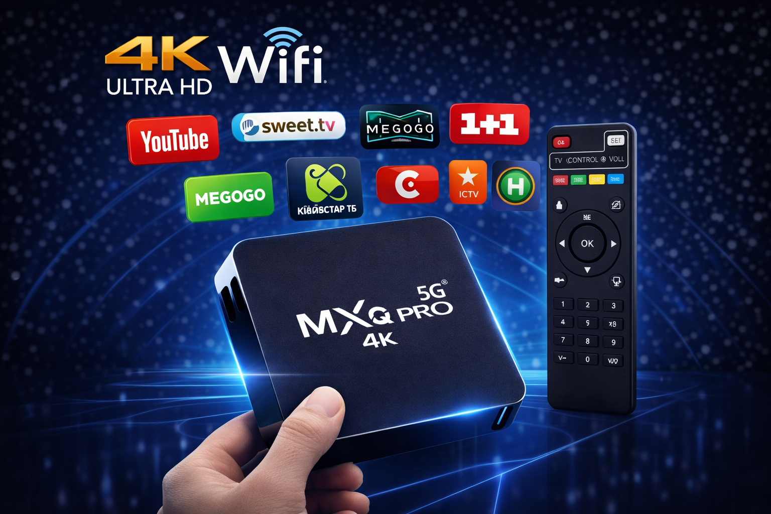 MXQ PRO 4K — це компактна Android TV приставка, яка відкриває доступ до YouTube, Netflix, IPTV, ігор та додатків у 4K Ultra HD. Підключається за хвилини та працює стабільно щодня.